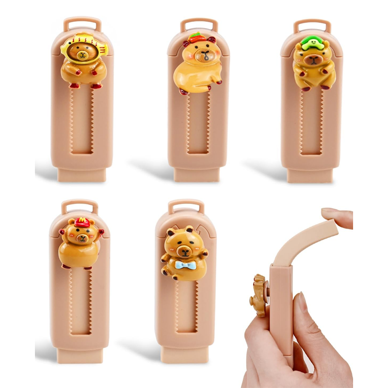 - Embrace your love for capybaras with this adorable 5 Pack of Retractable Erasers! These cute, push-pull rubber erasers come in a variety of brown shades and are perfect for any capybara enthusiast. Ideal for school or home use, they make great gifts for kids and adults alike. Their fun design makes erasing mistakes enjoyable, adding a whimsical touch to your stationery collection!It does not incorporate patented designs, licensed patterns, or trademarked elements.