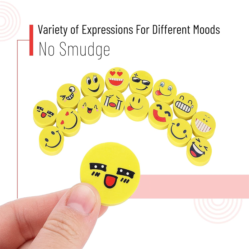 - Keep things cheerful with our large pack of 64 Smiley Erasers! Each mini eraser showcases a delightful smiley face, making them perfect for students and teachers alike. Ideal for arts and crafts, classroom rewards, or just for fun, these erasers are a necessity in any pencil case. Spread positivity with every mistake corrected!It does not incorporate patented designs, licensed patterns, or trademarked elements.