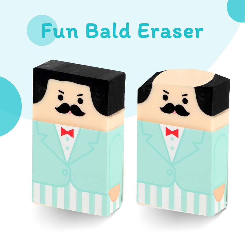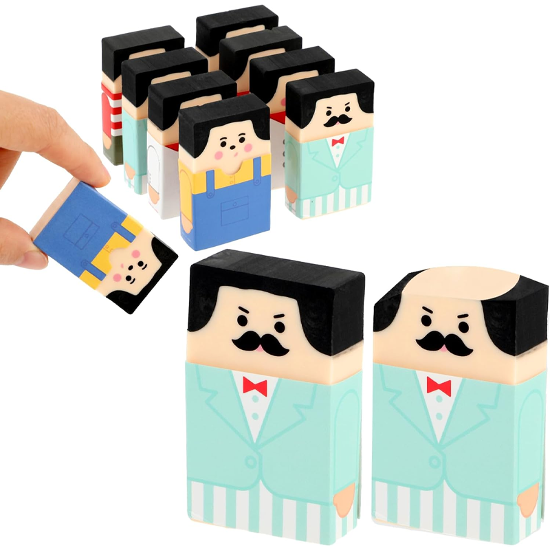 - Meet the office’s cutest secret agents! This set of 8 Cute Salaryman Erasers features quirky bald uncle designs that transition from hairy to hairless. These novelty erasers not only make erasing fun but also serve as humorous desk accessories that can liven up any workspace. Ideal for students or anyone looking to add a bit of whimsy to their office supplies, they are perfect as gifts or conversation starters.It does not incorporate patented designs, licensed patterns, or trademarked elements.